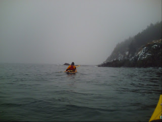 It was very, very foggy and rainy, but it was mild, with no wind, so it made for a decent day to paddle. We departed near the Bell Island ferry terminal and headed south for St Philips. There was a bit of swell coming from the northwest, but once we got into the protection of Bell Island, conditions were pretty benign. The paddle was roughly 10kms return and took us a little less than 2 hours. A good day on the water for December.